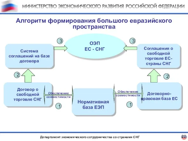 - 21. 21 Конечная цель: формирование большого евразийского пространства ОЭП СНГ - ЕС ЕЭП ЕС