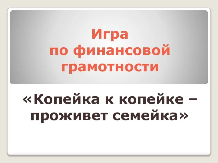 Игра по финансовой грамотности Копейка к копейке – проживет семейка