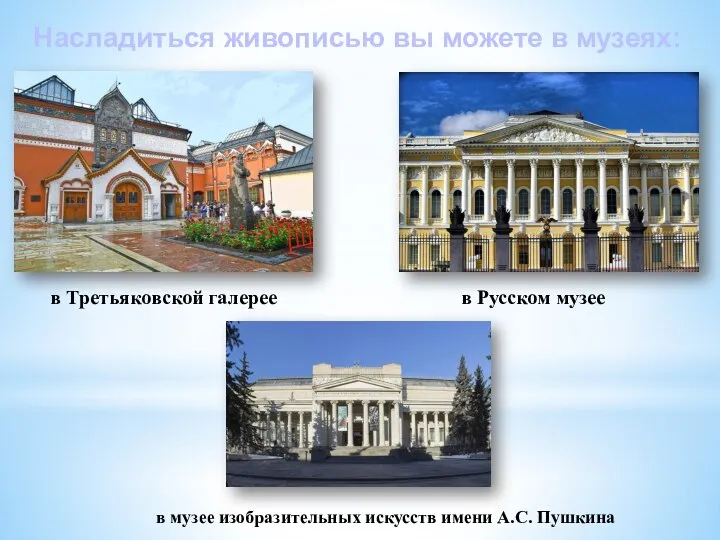 - 2. ПОДУМАЙ И ОТВЕТЬ Как называется музей, коллекционирующий произведения изобразительного искусства? художественный Как называется музей, коллекционирующий технику?