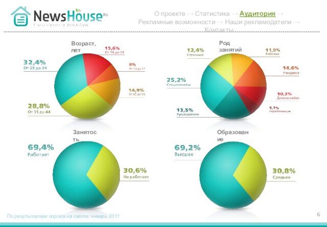 - 6. Возраст, лет По результатам опроса на сайте: январь 2011 О проекте → Статистика → Аудитория →