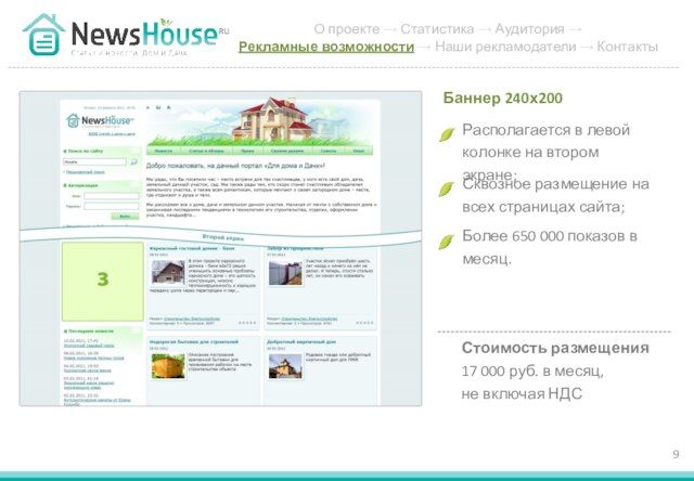 - 9. Располагается в левой колонке на втором экране; Баннер 240х200 Сквозное размещение на всех страницах сайта; Более