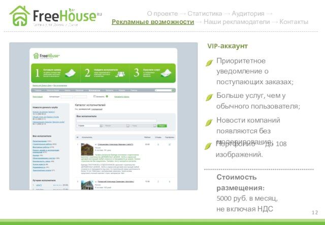 - 12. Приоритетное уведомление о поступающих заказах; VIP-аккаунт Больше услуг, чем у обычного пользователя; Новости компаний появляются без