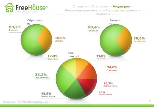 - 5. О проекте → Статистика → Аудитория → Рекламные возможности → Наши рекламодатели → Контакты Образование По
