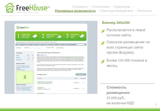 - 7. Располагается в левой колонке сайта; Баннер 240х200 Сквозное размещение на всех страницах сайта (кроме форума); Более