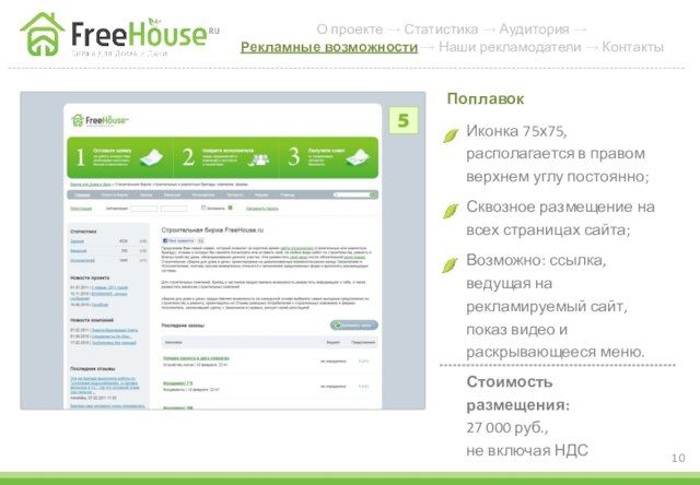- 9. Располагается в самом низу страницы; 3 баннера 240х100 Сквозное размещение на всех страницах сайта; Более 170