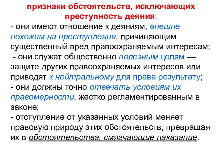 признаки обстоятельств, исключающих преступность деяния: