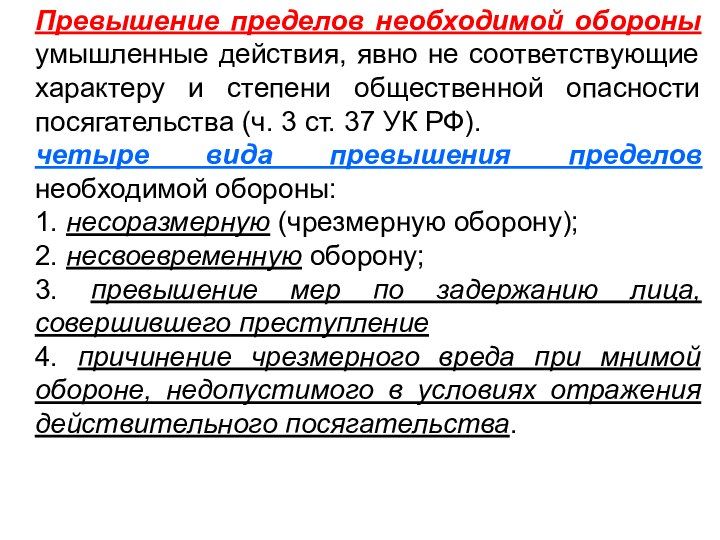 четыре вида превышения пределов необходимой обороны: