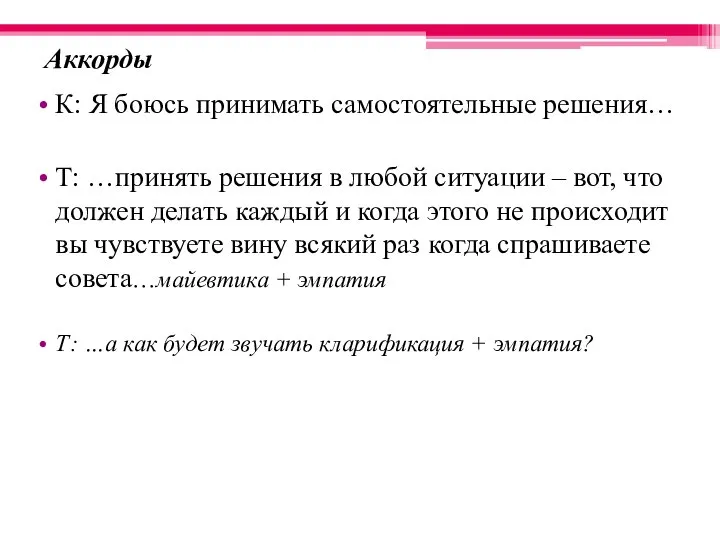 Как можно отреагировать: Эмпатией? Кларификацией? Майевтикой?