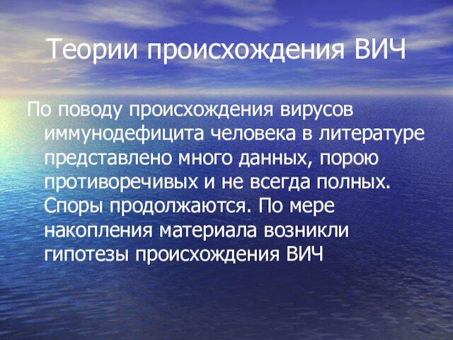данных, порою противоречивых и не всегда полных. Споры продолжаются. По мере накопления материала возникли гипотезы происхождения ВИЧ