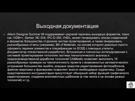 пределах единой среды разработки, которая позволяет спроектировать и учесть все аспекты работы электронного устройства. Это комплексное решение позволяет Altium Designer превышать возможности традиционных средств разработки, открывая новые возможности проектирования, которые позволяют создавать интеллектуальные электронные приборы быстрее чем когда-либо.