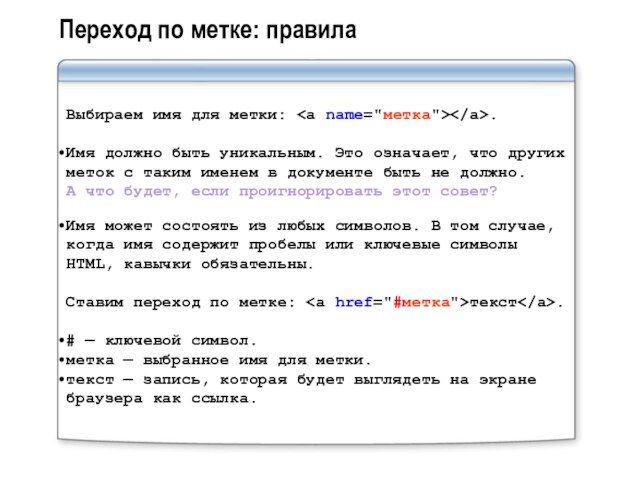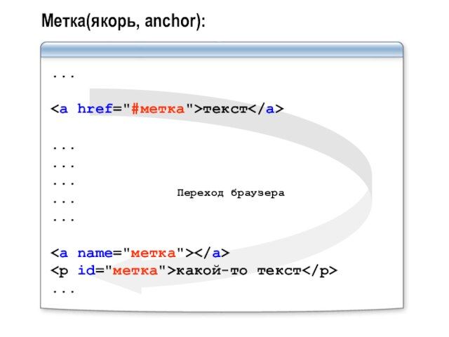 - 2. Переход браузера ... текст ... ... ... ... ... какой-то текст ... Метка(якорь, anchor):